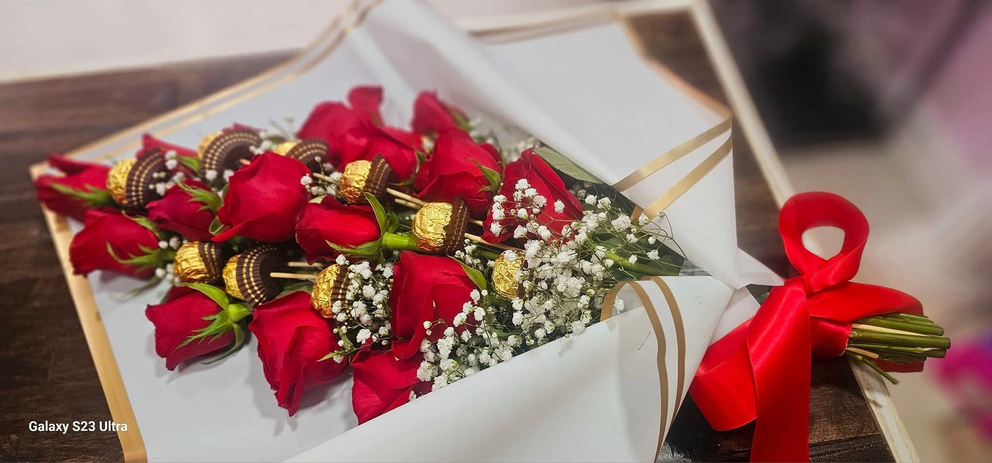 Elevate your gift-giving with our Ladder Style Buchon, a stunning arrangement that combines the timeless beauty of fresh roses with the indulgent delight of premium chocolates. Expertly crafted to showcase elegance and charm, this unique presentation is perfect for expressing love, appreciation, or celebration. The harmonious blend of fragrant blooms and sweet treats creates a memorable experience that delights both the eyes and the palate. Ideal for special occasions or as a thoughtful surprise, this bouquet offers a sophisticated touch that only a true floral expert can deliver.